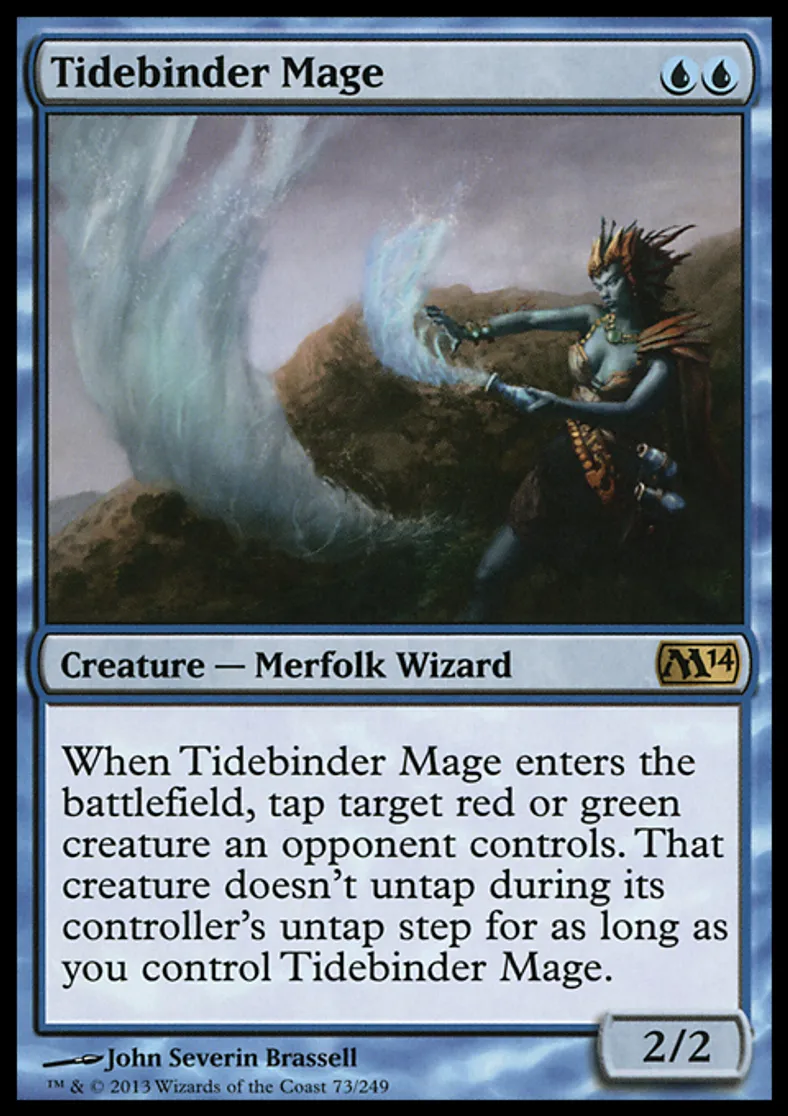 | Oracle Text | When Tidebinder Mage enters the battlefield, tap target red or green creature an opponent controls. That creature doesn't untap during its controller's untap step for as long as you control Tidebinder Mage. | ||