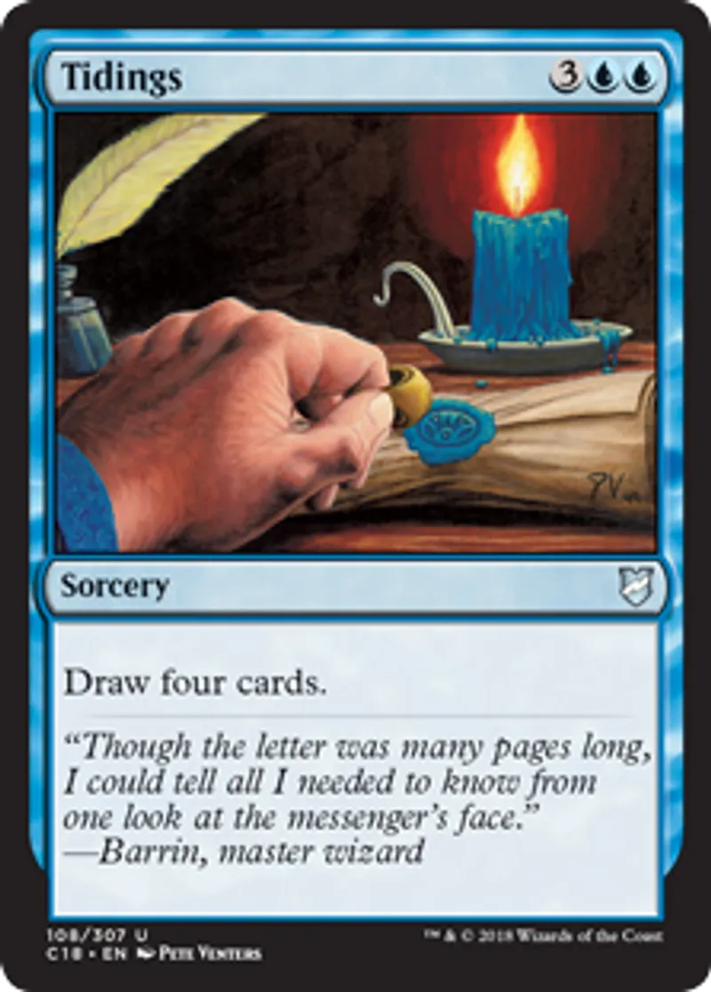 Magic: the Gathering (mtg) Uncommon Sorcery Tidings from Commander 2018 (C18) last updated 2026-02-21 16:54:02