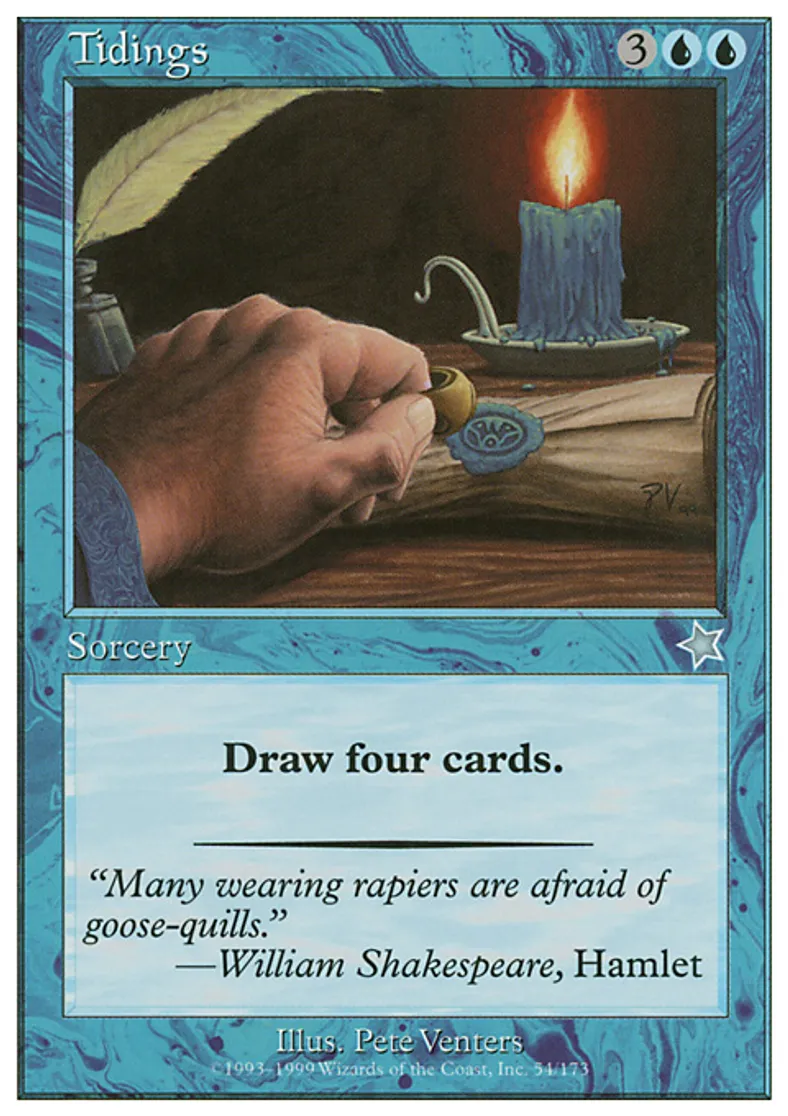 Magic: the Gathering (mtg) Uncommon Sorcery Tidings from Starter 1999 (S99) last updated 2026-02-21 15:06:07