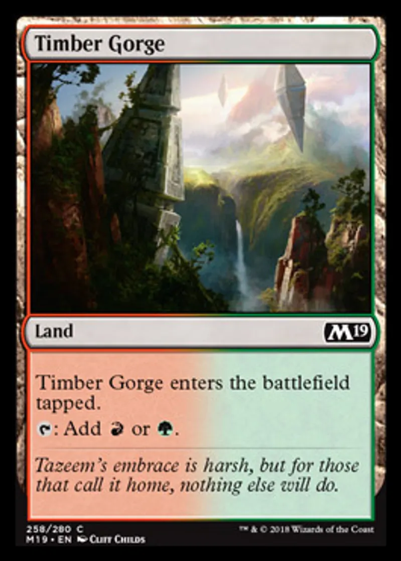 Magic: the Gathering (mtg) Common Land Timber Gorge from Core Set 2019 (M19) last updated 2026-02-21 16:53:32