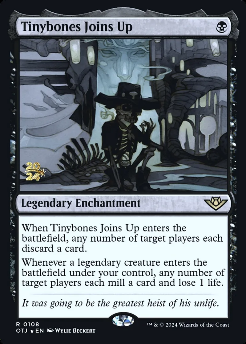 | Oracle Text | When Tinybones Joins Up enters the battlefield, any number of target players each discard a card.