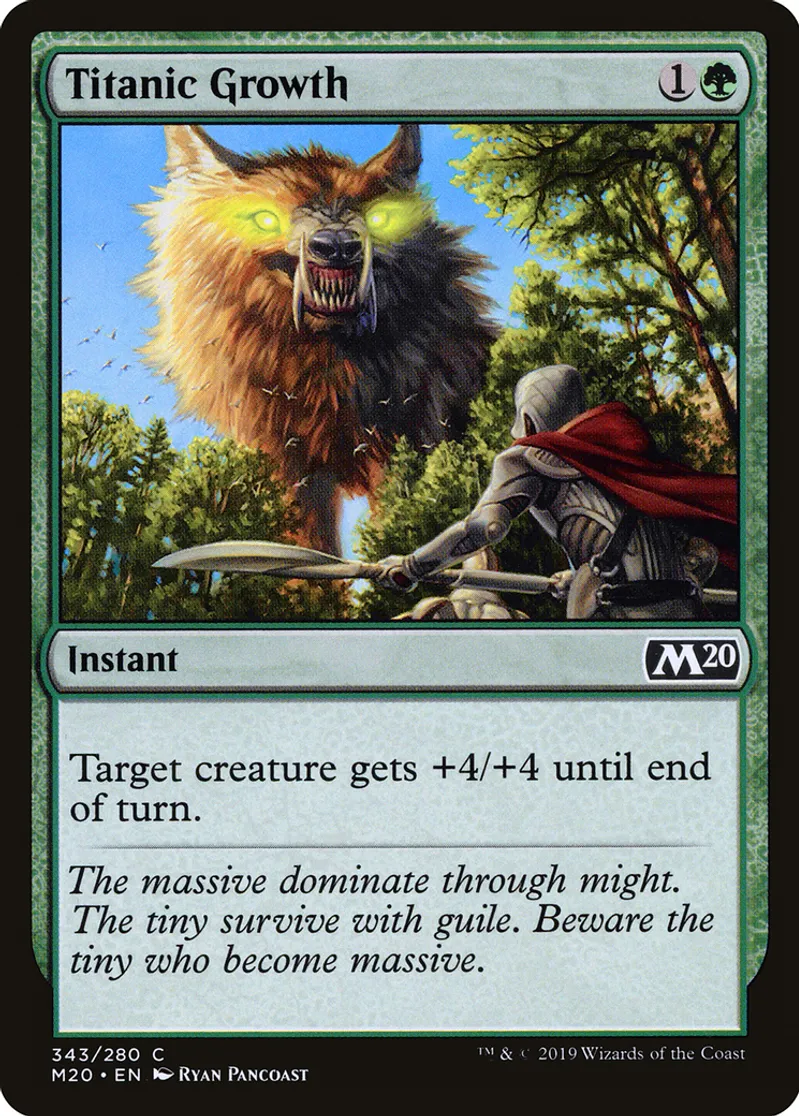 Magic: the Gathering (mtg) Common Instant Titanic Growth from Core Set 2020 (M20) last updated 2026-02-21 16:59:32