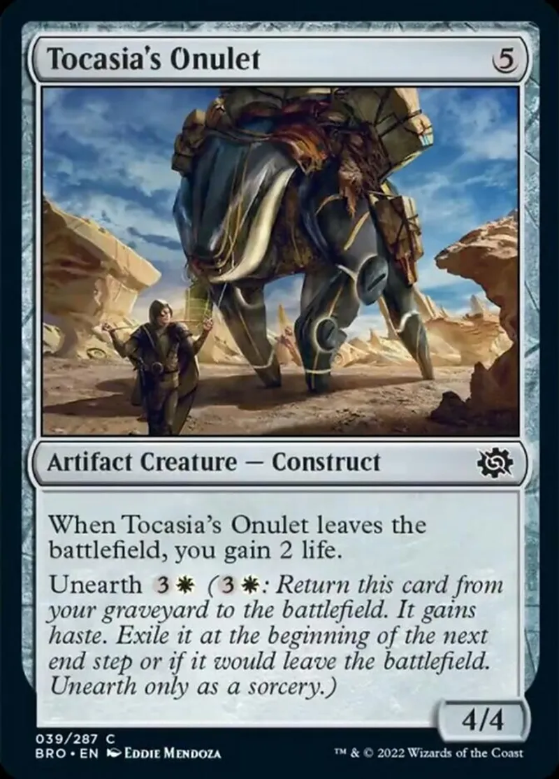 Magic: the Gathering (mtg) common Artifact Creature — Construct Tocasia's Onulet from The Brothers' War (bro) last updated 2026-02-21 16:15:06