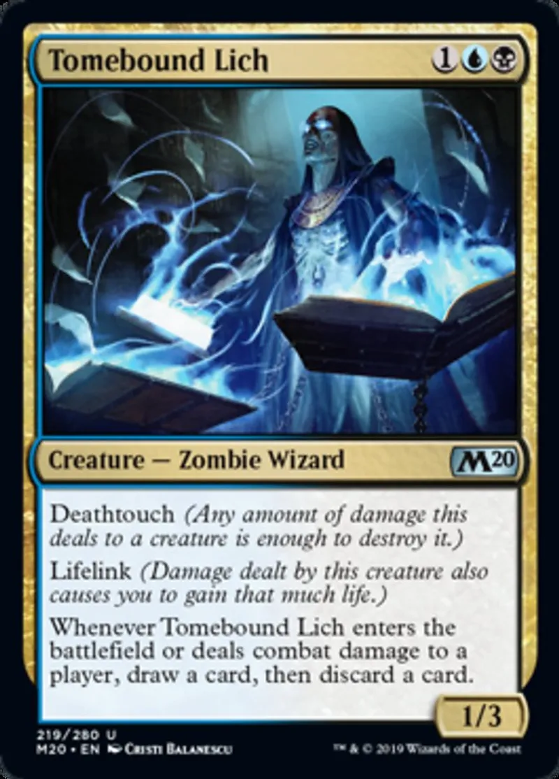 Magic: the Gathering (mtg) Uncommon Creature — Zombie Wizard Tomebound Lich from Core Set 2020 (M20) last updated 2026-02-21 16:59:06