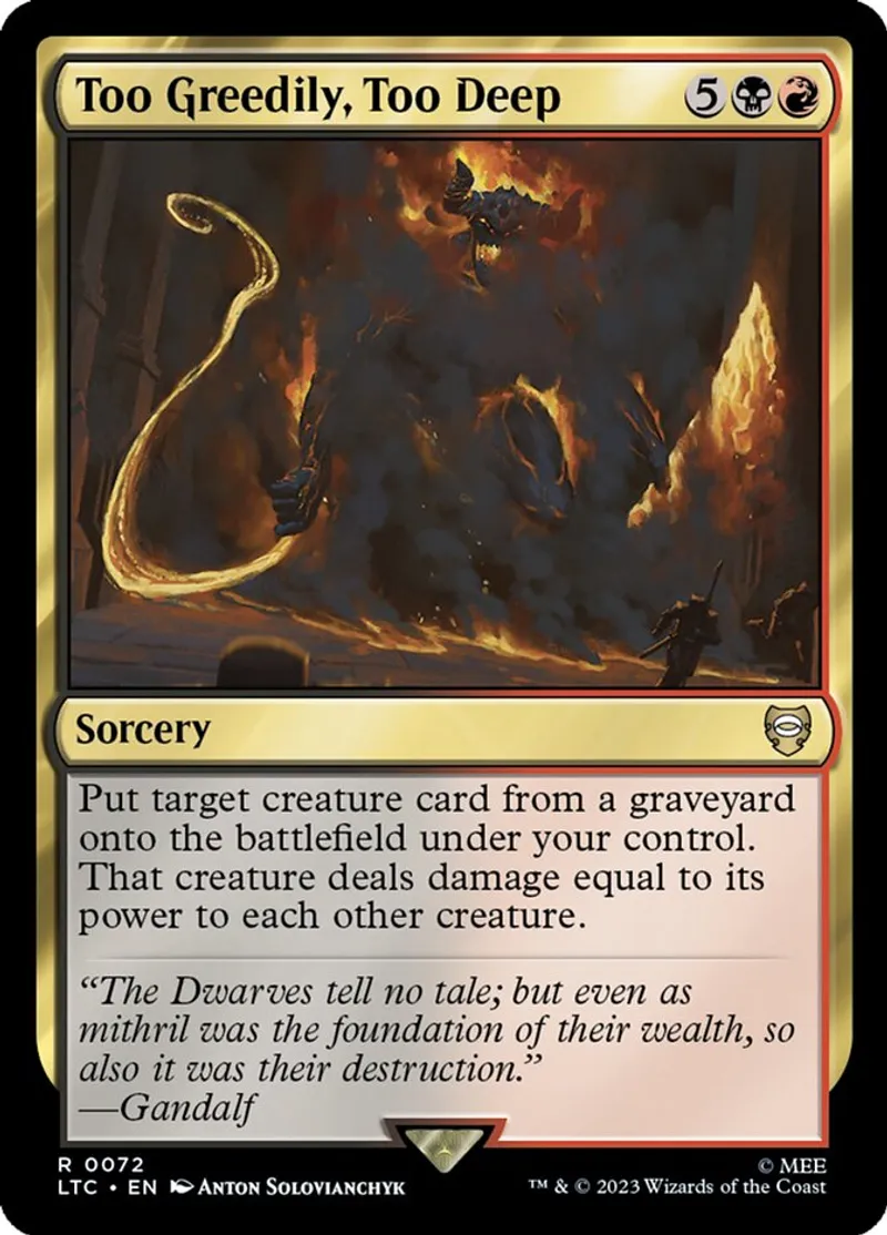 Magic: the Gathering (mtg) rare Sorcery Too Greedily, Too Deep from Tales of Middle-earth Commander (ltc) last updated 2026-02-24 15:43:07