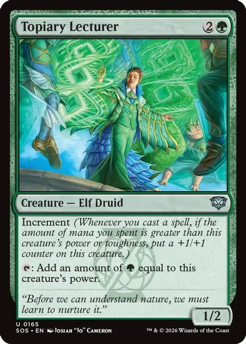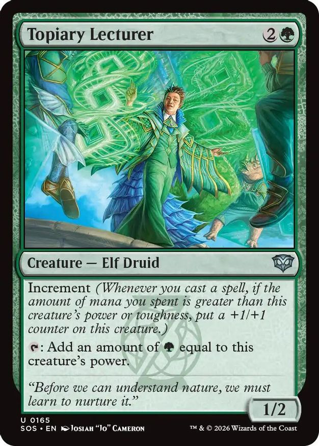 Magic: the Gathering (mtg) Uncommon creature — elf druid Topiary Lecturer from Secrets of Strixhaven (SOS) last updated 2026-04-16 23:17:36