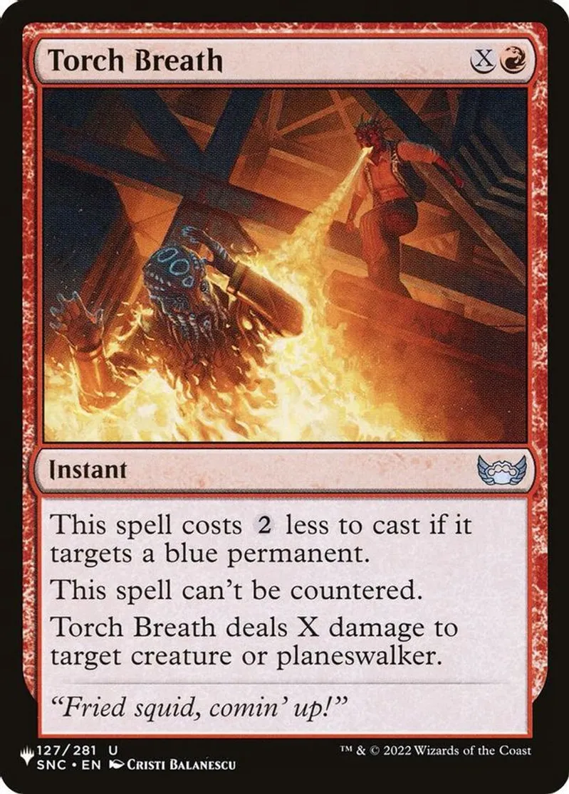 Magic: the Gathering (mtg) Uncommon instant Torch Breath from The List Reprints (PLIST) last updated 2026-02-21 15:31:01