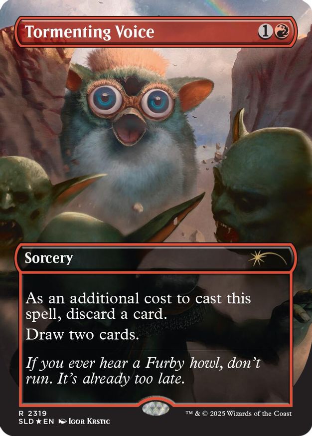 Magic: the Gathering (mtg) Rare sorcery Tormenting Voice from Secret Lair Drop Series (SLD) last updated 2025-12-04 14:21:36