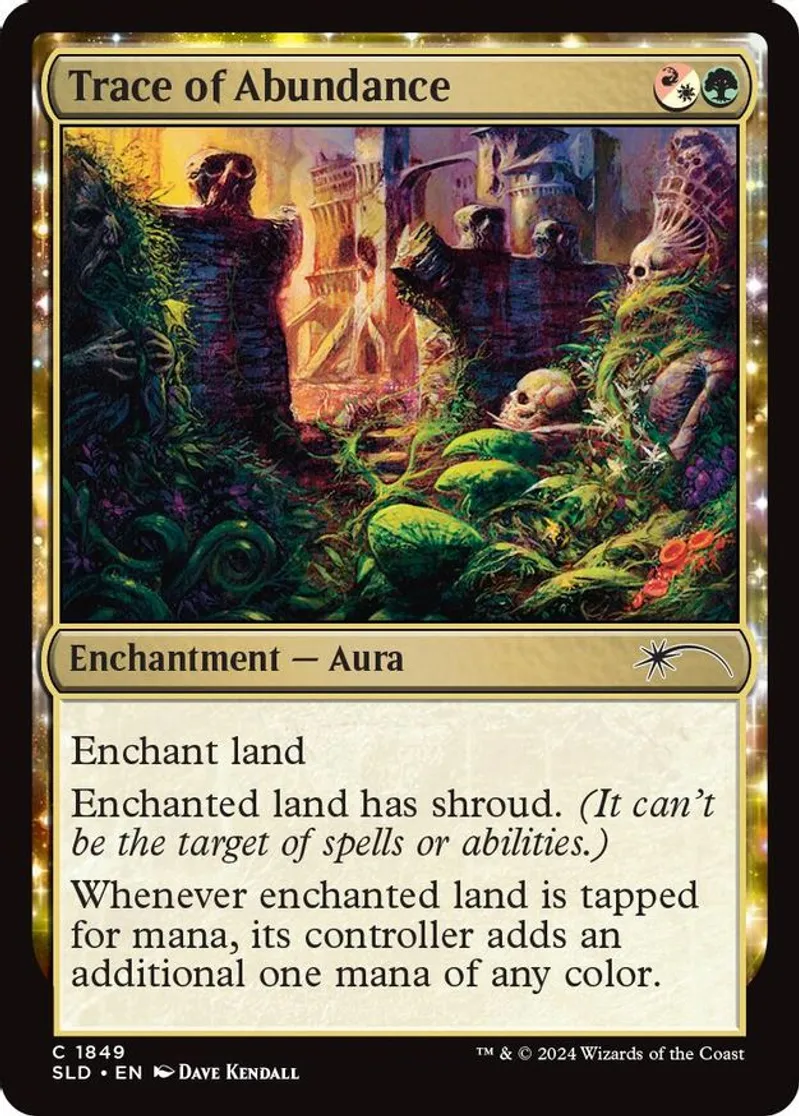 Magic: the Gathering (mtg) Common enchantment — aura Trace of Abundance from Secret Lair Drop Series (SLD) last updated 2026-02-25 14:50:32