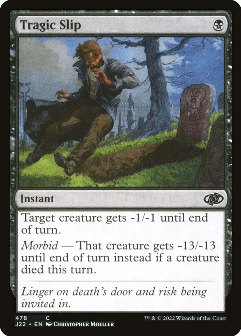 Magic: the Gathering (mtg) Common Instant Tragic Slip from Jumpstart 2022 (J22) last updated 2026-02-21 16:19:33