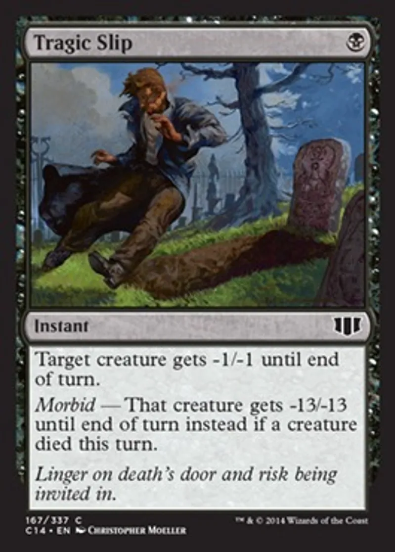 Magic: the Gathering (mtg) Common Instant Tragic Slip from Commander 2014 (C14) last updated 2026-02-23 16:00:32