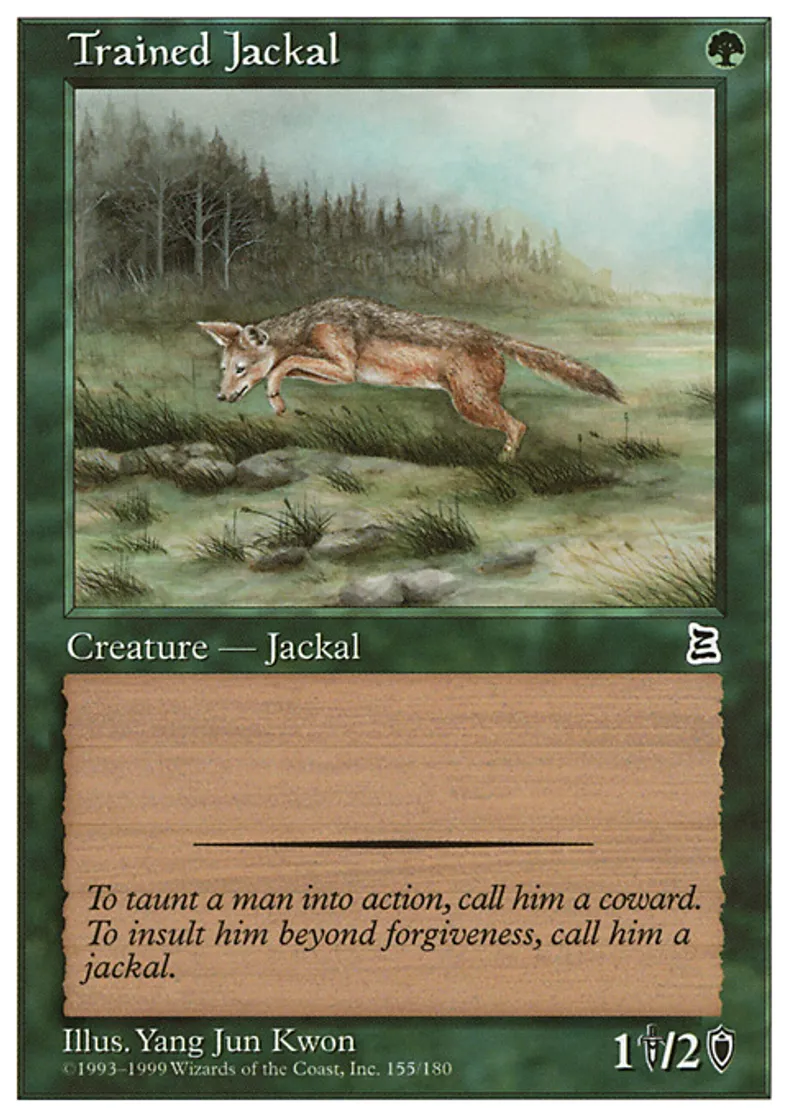 | Flavor Text | To taunt a man into action, call him a coward. To insult him beyond forgiveness, call him a jackal. | ||
