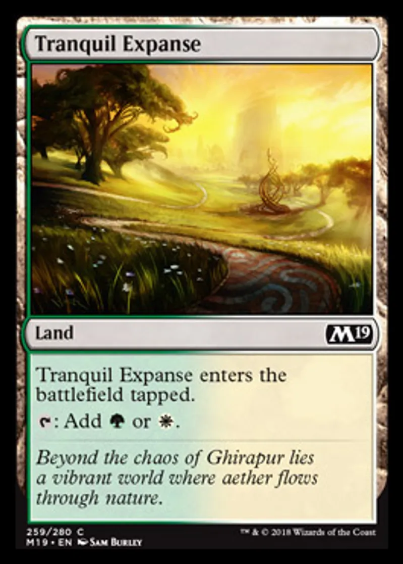 Magic: the Gathering (mtg) Common Land Tranquil Expanse from Core Set 2019 (M19) last updated 2026-02-21 16:53:32