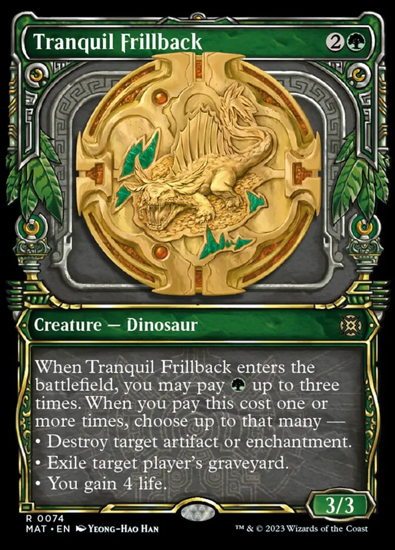 Magic: the Gathering (mtg) Rare Creature — Dinosaur Tranquil Frillback from March of the Machine: The Aftermath (mat) last updated 2026-02-24 15:42:32