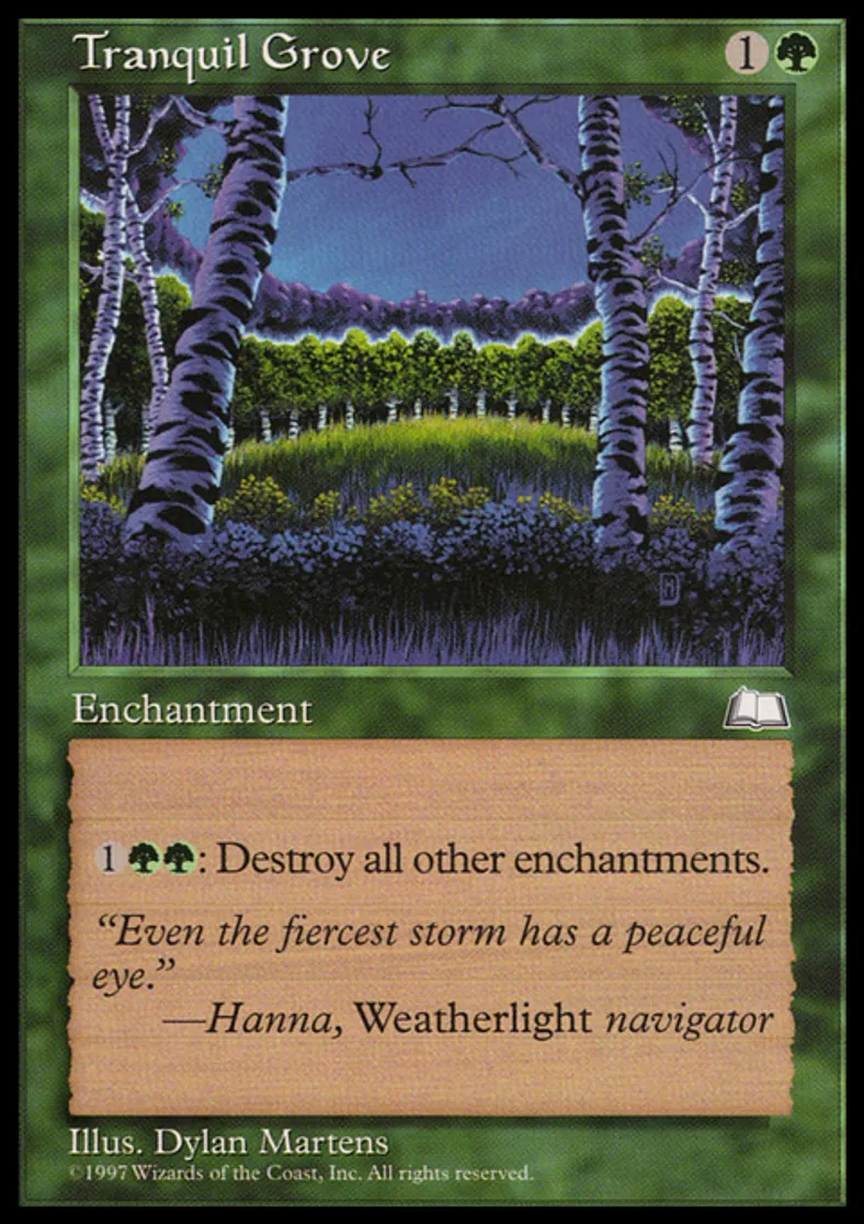 Magic: the Gathering (mtg) Rare Enchantment Tranquil Grove from Weatherlight (WTH) last updated 2026-02-07 15:05:02