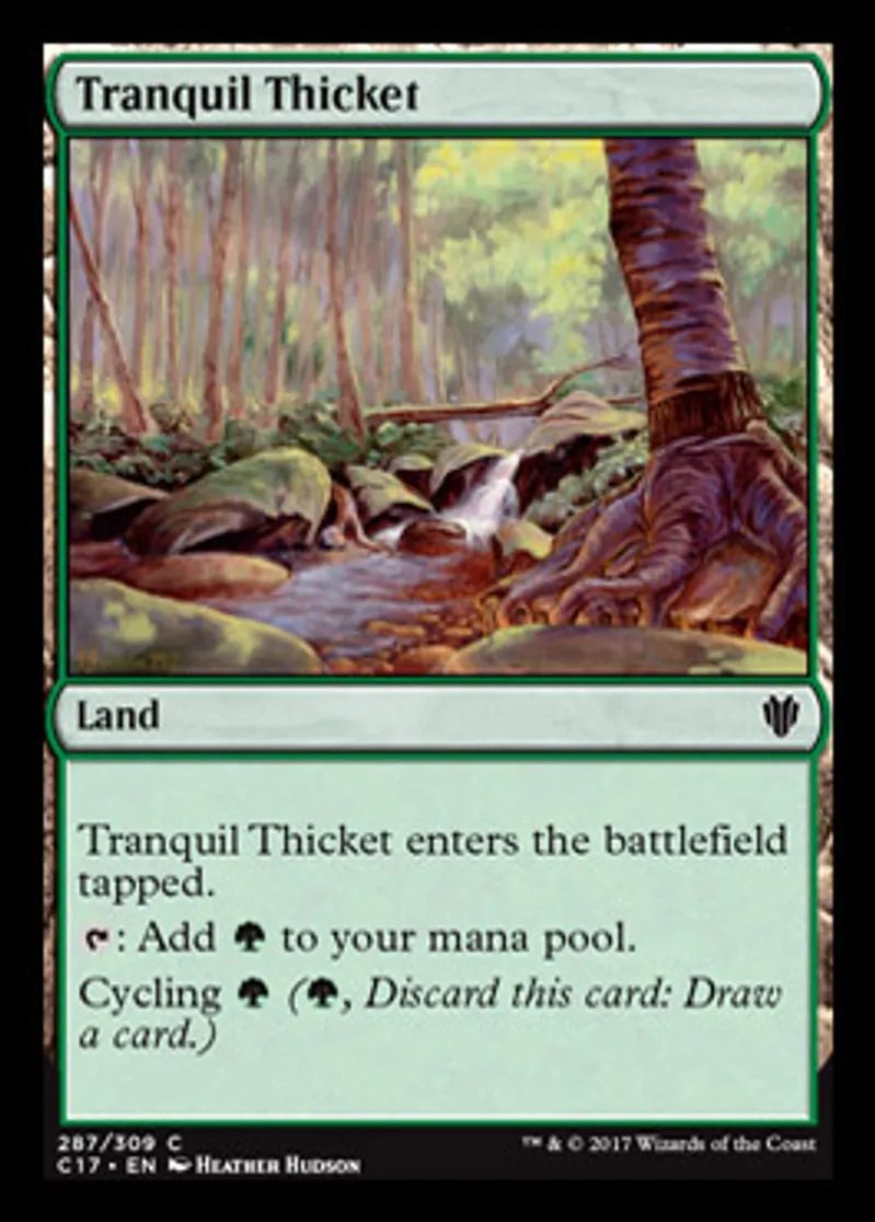 Magic: the Gathering (mtg) Common Land Tranquil Thicket from Commander 2017 (C17) last updated 2026-02-06 16:04:04
