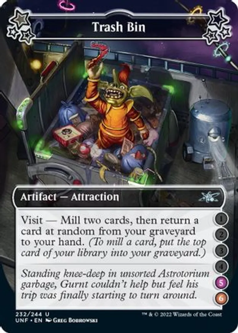 Magic: the Gathering (mtg) Uncommon Artifact — Attraction Trash Bin from Unfinity (UNF) last updated 2026-02-21 16:12:32