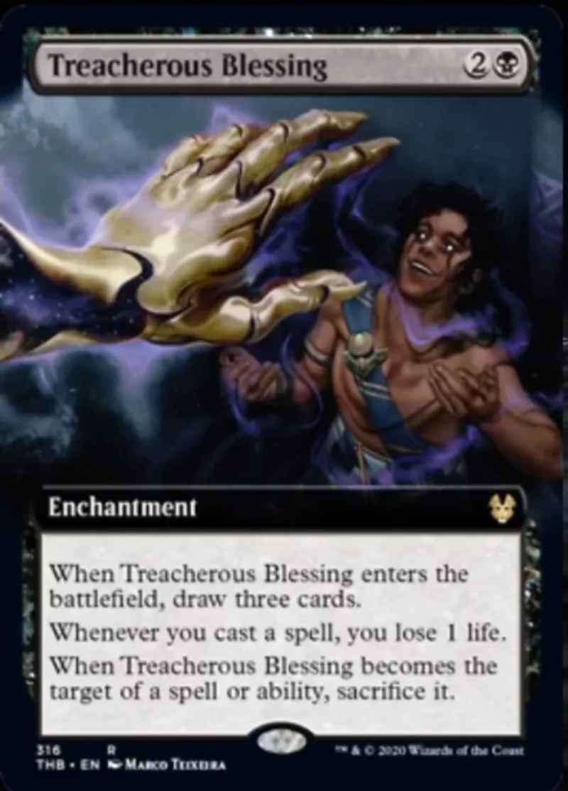 Treacherous Blessing (Extended Art) is a Rare in the set Theros Beyond Death.