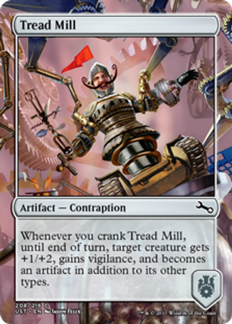 | Oracle Text | Whenever you crank Tread Mill, until end of turn, target creature gets +1/+2, gains vigilance, and becomes an artifact in addition to its other types. | ||