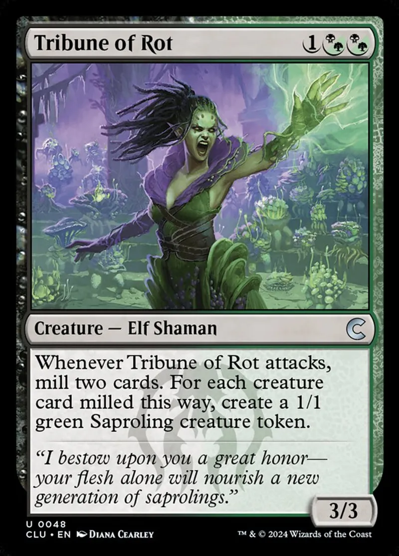 Magic: the Gathering (mtg) uncommon Creature — Elf Shaman Tribune of Rot from Ravnica: Clue Edition (clu) last updated 2026-02-21 15:56:02