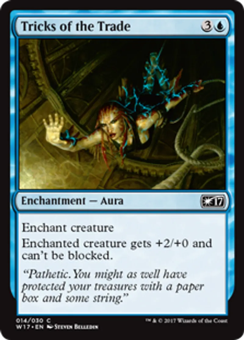 Magic: the Gathering (mtg) Common Enchantment - Aura Tricks of the Trade from Welcome Deck 2017 (W17) last updated 2026-02-21 16:48:04