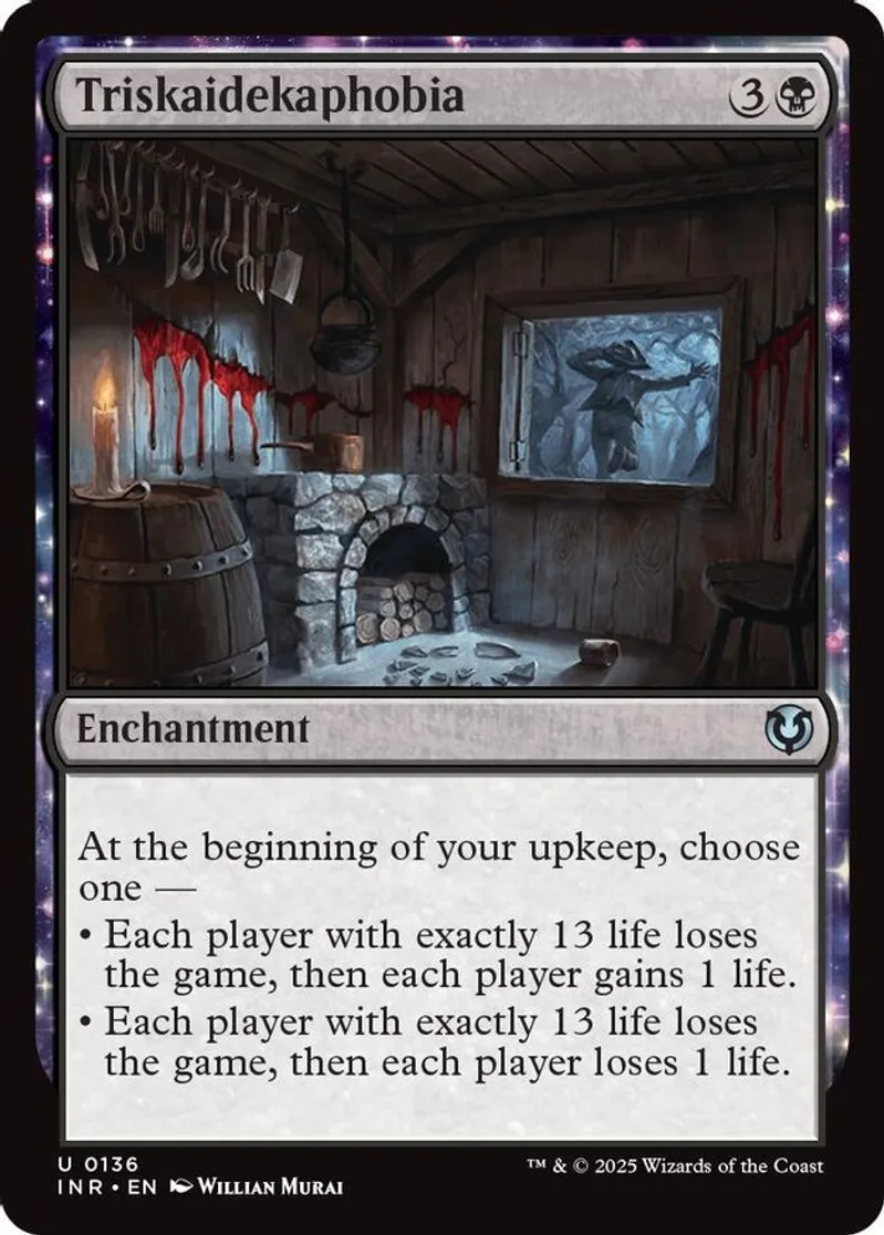 Magic: the Gathering (mtg) Uncommon enchantment Triskaidekaphobia from Innistrad Remastered (INR) last updated 2026-02-21 15:34:32