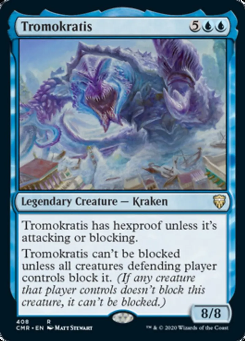 Tromokratis can’t be blocked unless all creatures defending player controls block it. (If any creature that player controls doesn’t block this creature, it can’t be blocked.) | ||