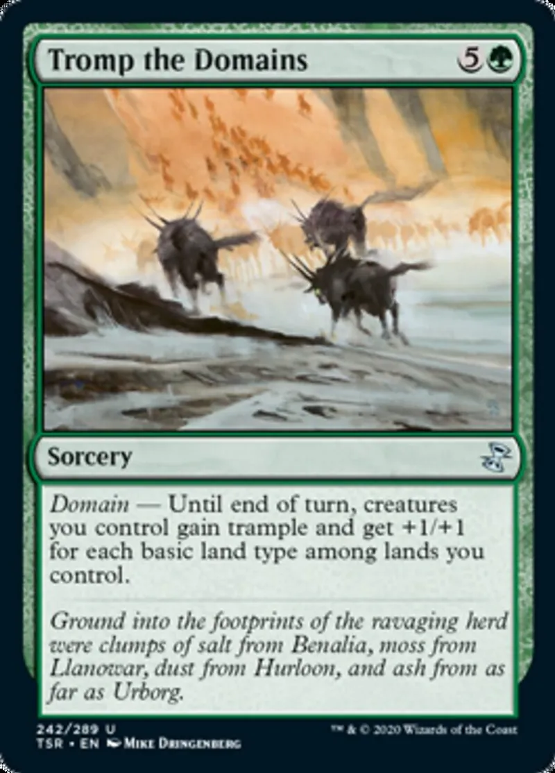 Magic: the Gathering (mtg) uncommon Sorcery Tromp the Domains from Time Spiral Remastered (tsr) last updated 2026-02-21 16:34:36