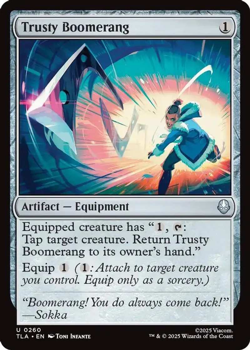 Magic: the Gathering (mtg) Uncommon artifact — equipment Trusty Boomerang from Avatar: The Last Airbender (TLA) last updated 2026-01-17 17:47:31