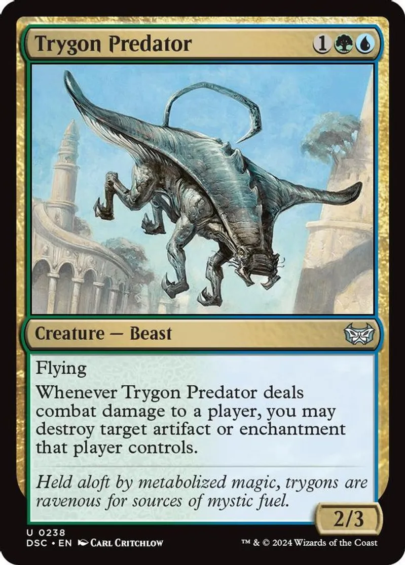 | Oracle Text | flying whenever trygon predator deals combat damage to a player, you may destroy target artifact or enchantment that player controls. | ||
