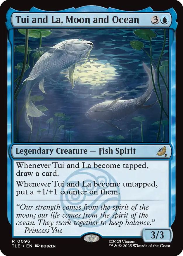 Magic: the Gathering (mtg) Rare legendary creature — fish spirit Tui and La, Moon and Ocean from Avatar: The Last Airbender: Eternal-Legal (TLE) last updated 2025-11-30 16:05:32
