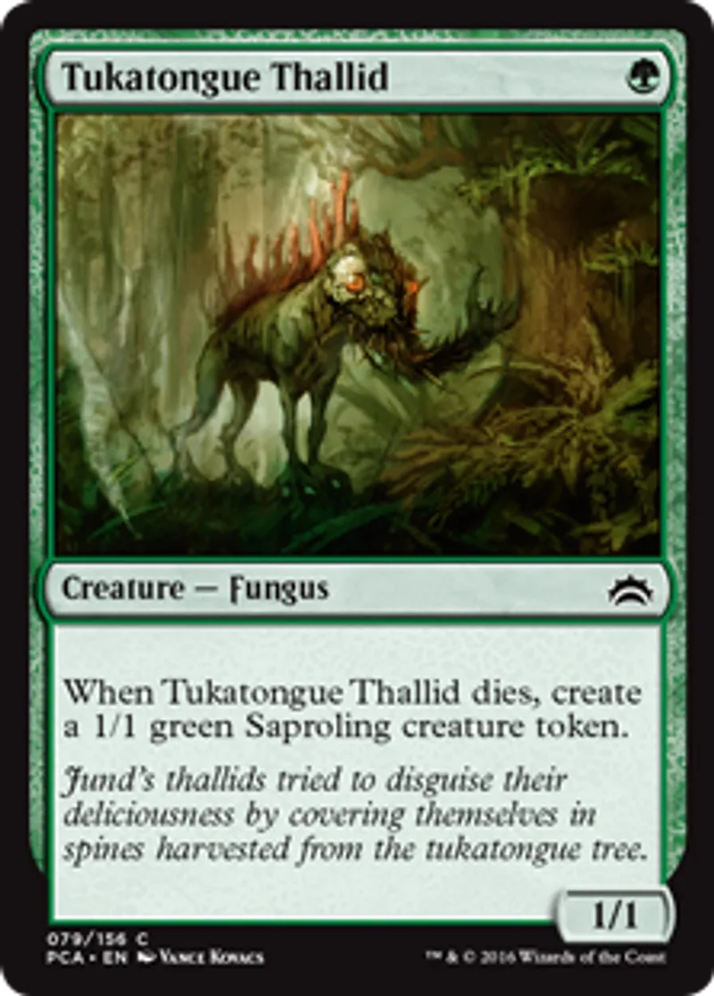 | Oracle Text | When Tukatongue Thallid dies, create a 1/1 green Saproling creature token. | ||
