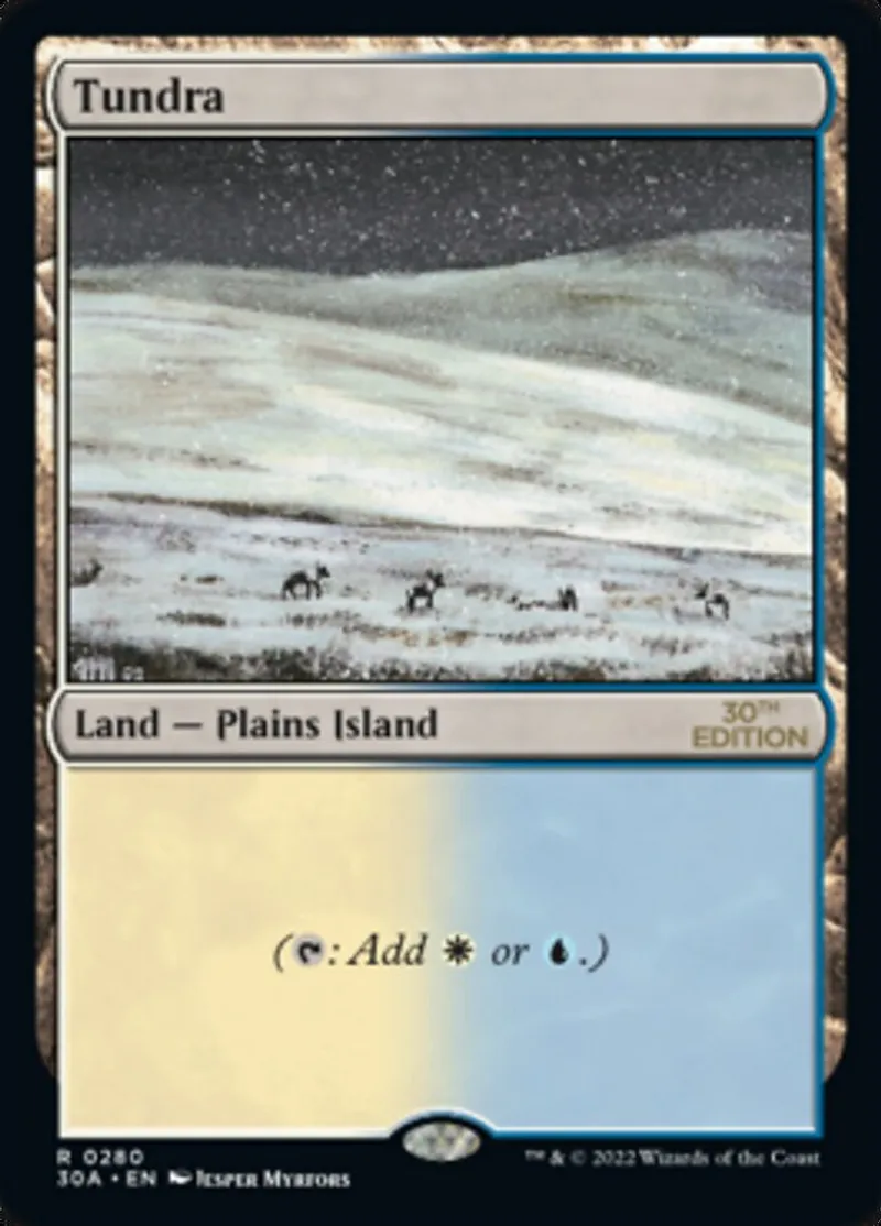 Magic: the Gathering (mtg) rare Land — Plains Island Tundra from 30th Anniversary Edition (30a) last updated 2026-02-07 14:25:32