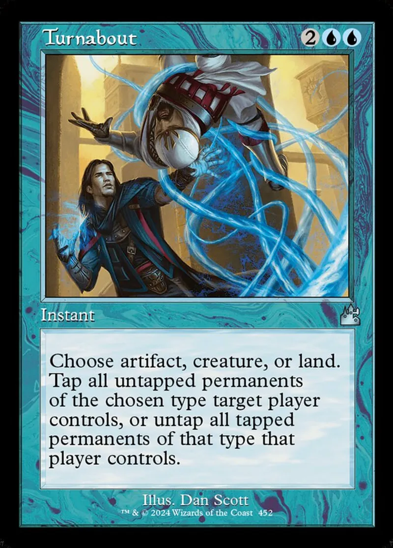 Magic: the Gathering (mtg) uncommon Instant Turnabout from Ravnica Remastered (rvr) last updated 2026-02-25 15:12:32