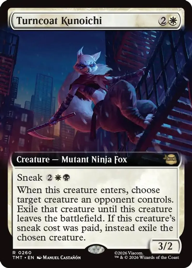 Magic: the Gathering (mtg) Rare creature — mutant ninja fox Turncoat Kunoichi from Teenage Mutant Ninja Turtles (TMT) last updated 2026-02-24 21:55:05