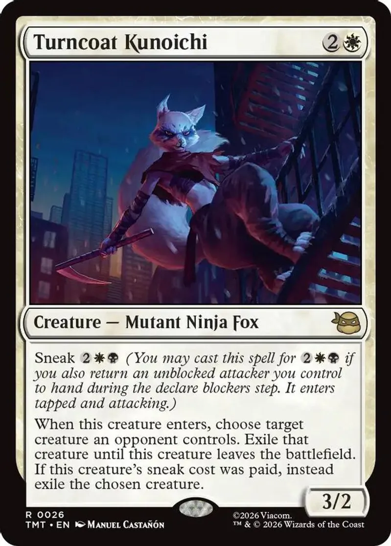 Magic: the Gathering (mtg) Rare creature — mutant ninja fox Turncoat Kunoichi from Teenage Mutant Ninja Turtles (TMT) last updated 2026-02-24 14:17:06