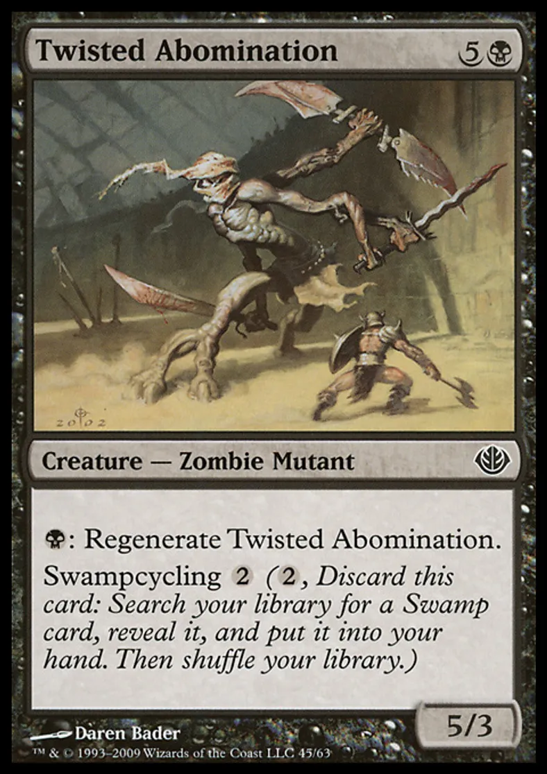 | Oracle Text | {{b}}: Regenerate Twisted Abomination. Swampcycling {{2}} ({{2}}, Discard this card: Search your library for a Swamp card, reveal it, and put it into your hand. Then shuffle your library.) | ||