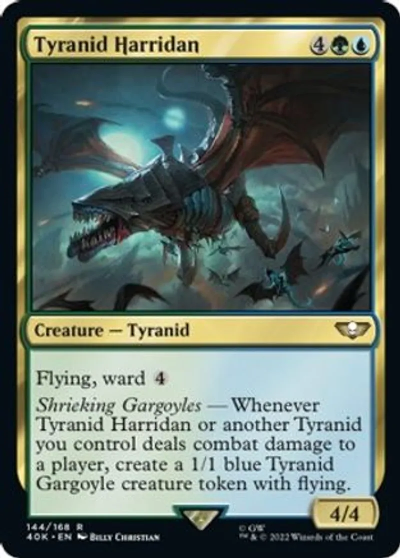 Shrieking Gargoyles — Whenever Tyranid Harridan or another Tyranid you control deals combat damage to a player, create a 1/1 blue Tyranid Gargoyle creature token with flying. | ||