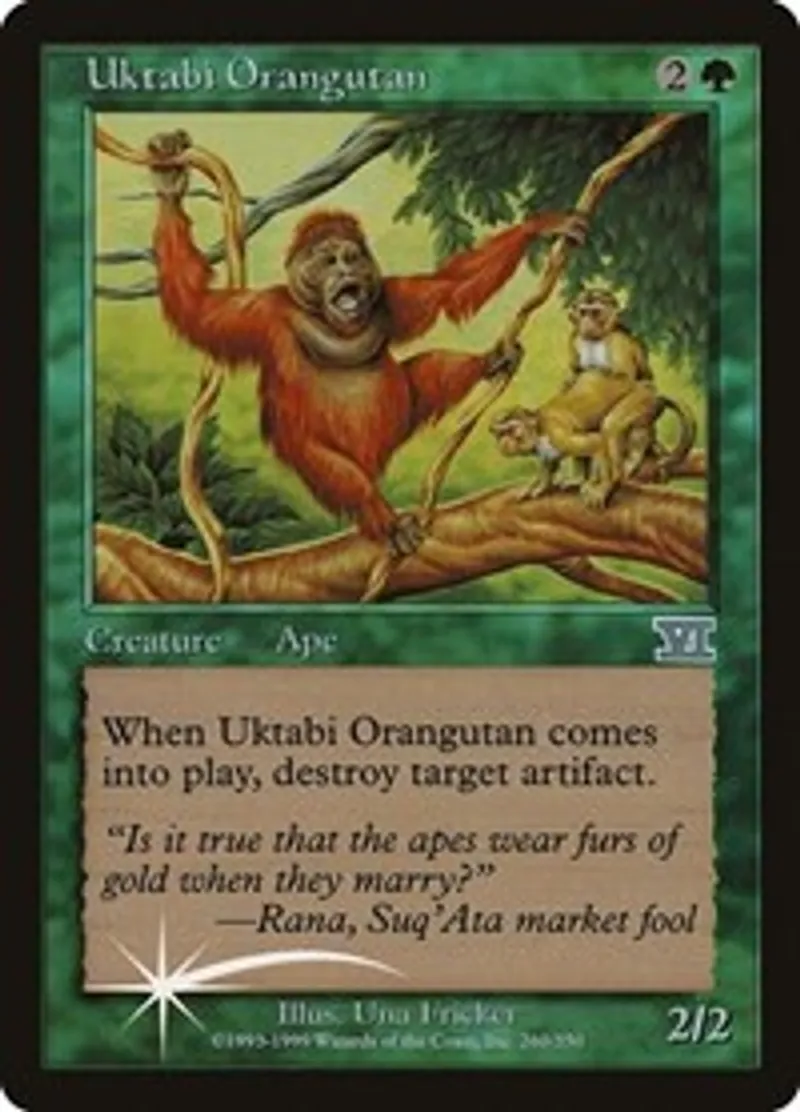 | Oracle Text | When Uktabi Orangutan enters the battlefield, destroy target artifact. | ||