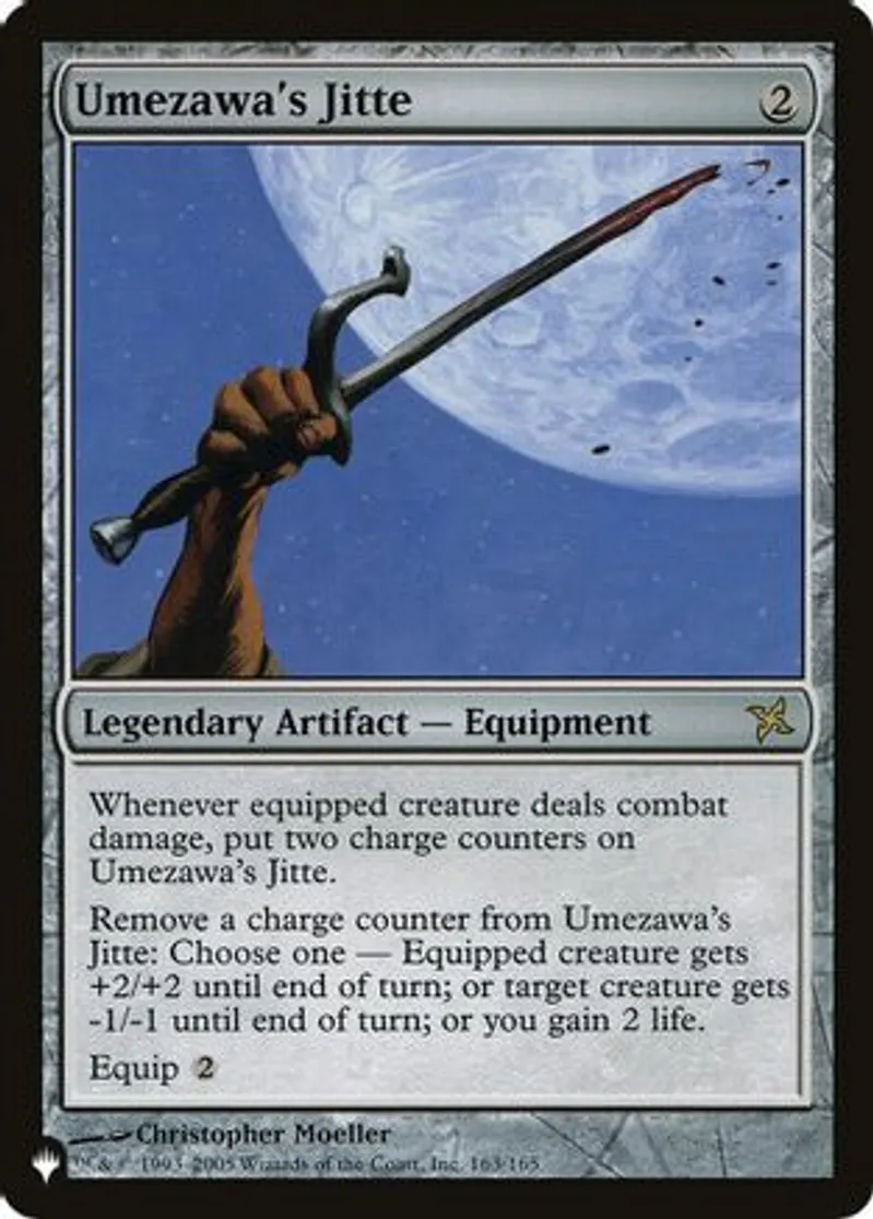 Magic: the Gathering (mtg) Rare Legendary Artifact — Equipment Umezawa's Jitte from The List (PLIST) last updated 2026-02-24 14:35:06