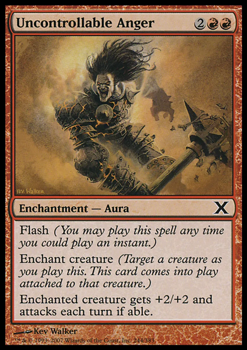 Magic: the Gathering (mtg) Common Enchantment - Aura Uncontrollable Anger from Tenth Edition (10E) last updated 2026-02-07 17:45:02