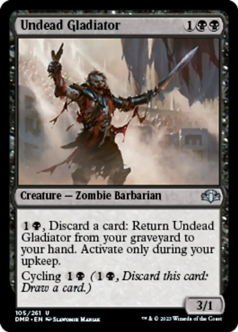 Magic: the Gathering (mtg) uncommon Creature — Zombie Barbarian Undead Gladiator from Dominaria Remastered (dmr) last updated 2026-02-21 16:18:02