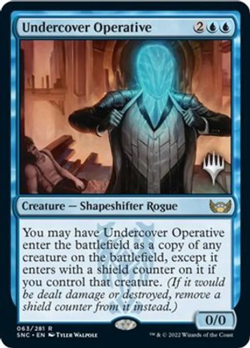 | Oracle Text | You may have Undercover Operative enter the battlefield as a copy of any creature on the battlefield, except it enters with a shield counter on it if you control that creature. (If it would be dealt damage or destroyed, remove a shield counter from it instead.) | ||