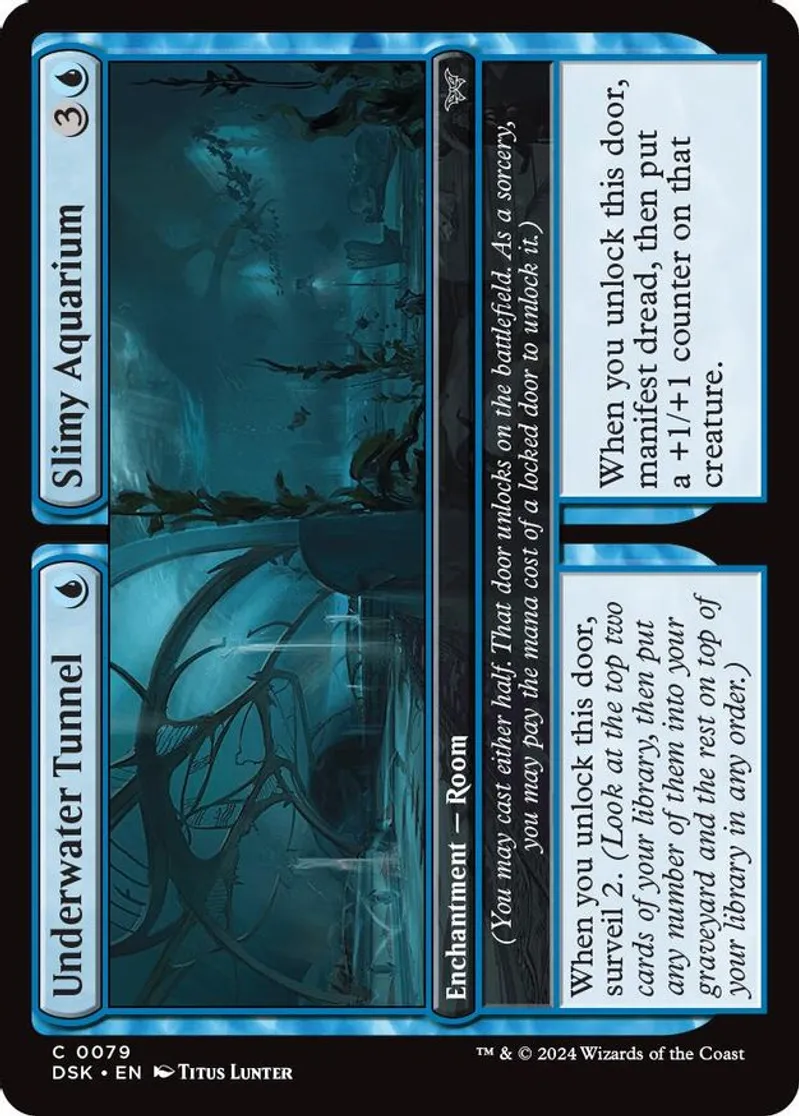 Magic: the Gathering (mtg) Common enchantment — room Underwater Tunnel // Slimy Aquarium from Duskmourn: House of Horror (DSK) last updated 2026-02-21 15:27:06