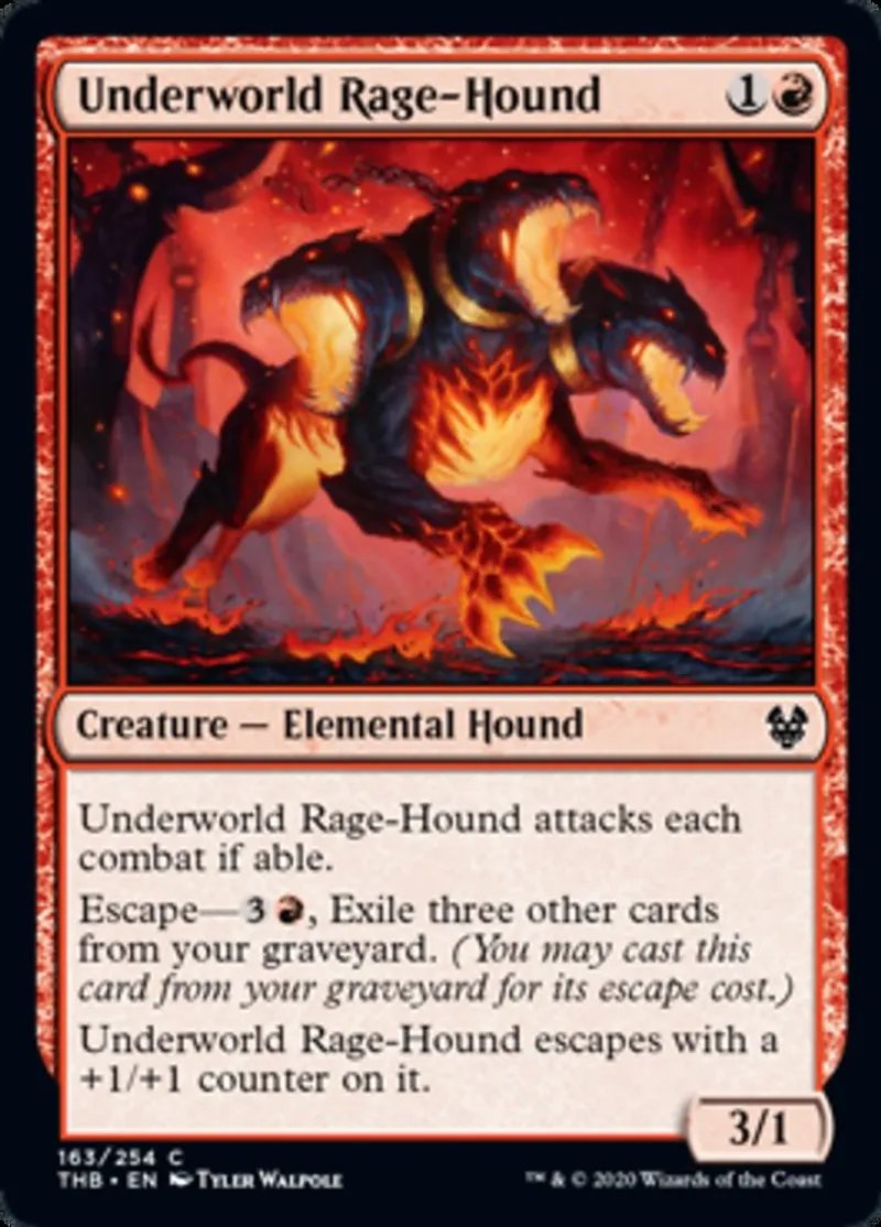 Magic: the Gathering (mtg) common Creature — Elemental Hound Underworld Rage-Hound from Theros Beyond Death (thb) last updated 2026-02-21 17:01:36