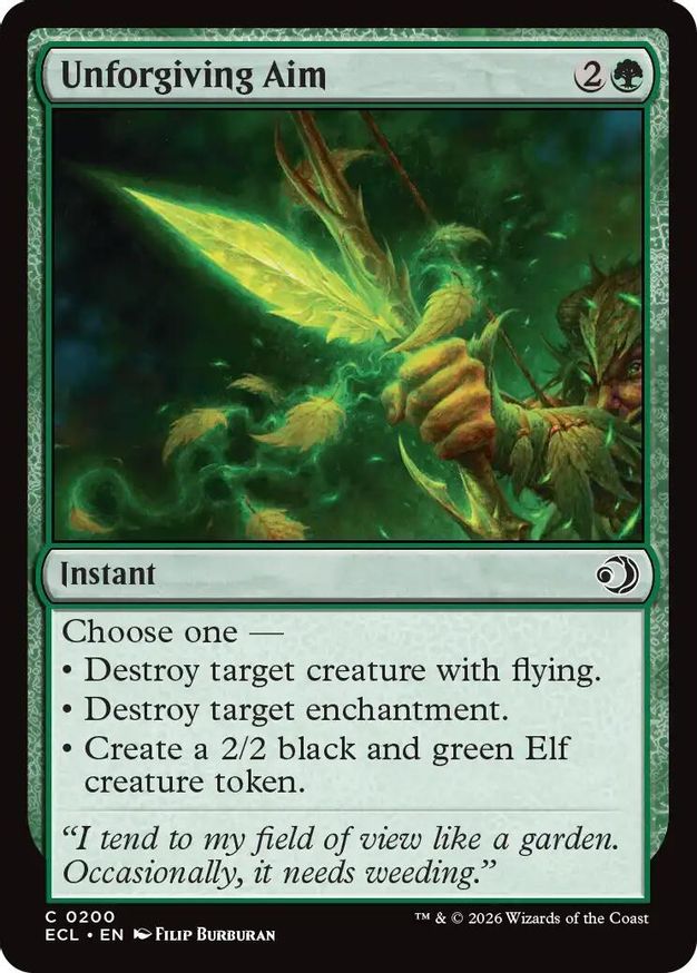 Magic: the Gathering (mtg) Common instant Unforgiving Aim from Lorwyn Eclipsed (ECL) last updated 2026-01-11 16:20:02