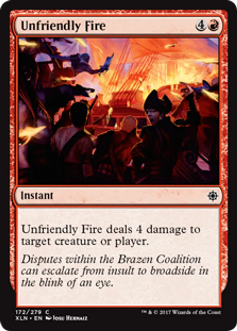 Magic: the Gathering (mtg) Common Instant Unfriendly Fire from Ixalan (XLN) last updated 2026-02-21 16:48:04