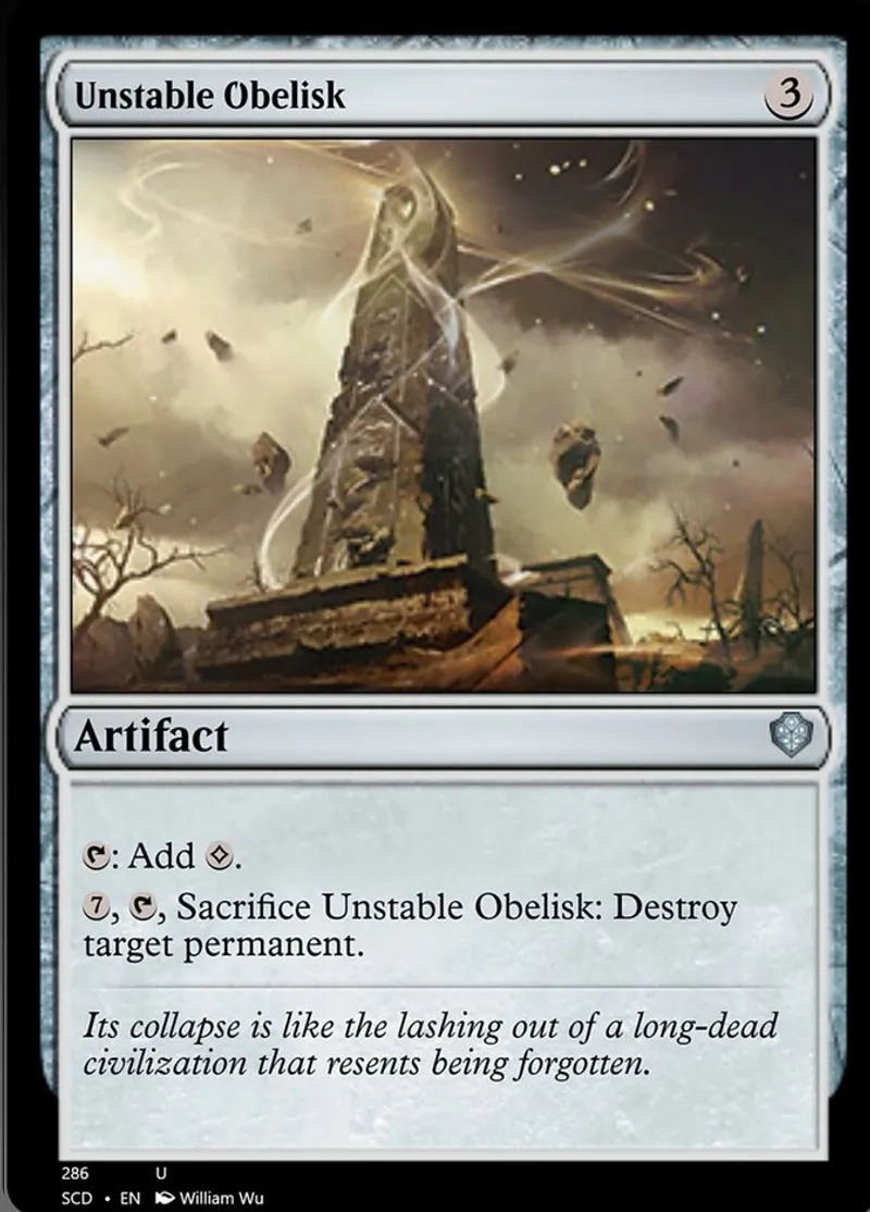 Magic: the Gathering (mtg) uncommon Artifact Unstable Obelisk from Starter Commander Decks (scd) last updated 2026-02-21 16:19:33