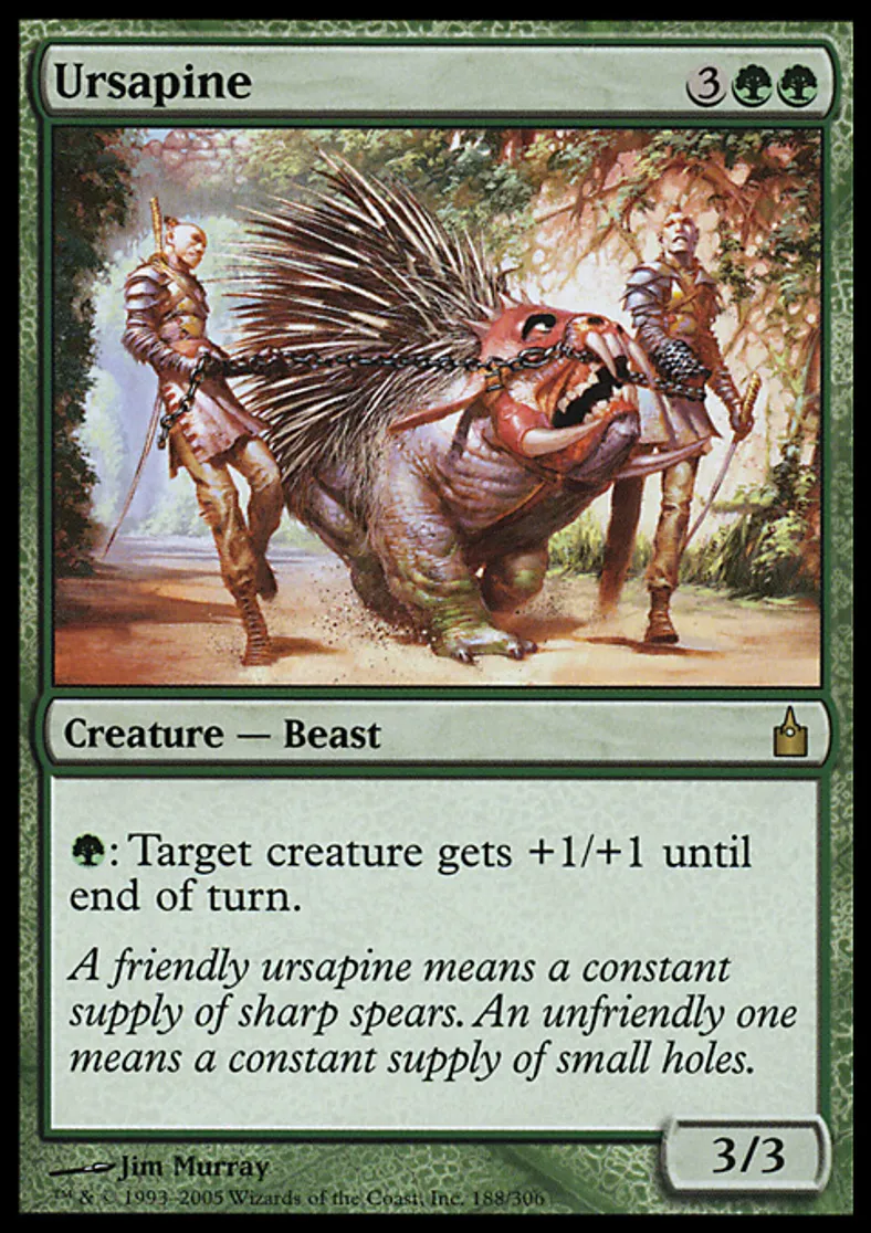 | Flavor Text | A friendly ursapine means a constant supply of sharp spears. An unfriendly one means a constant supply of small holes. | ||