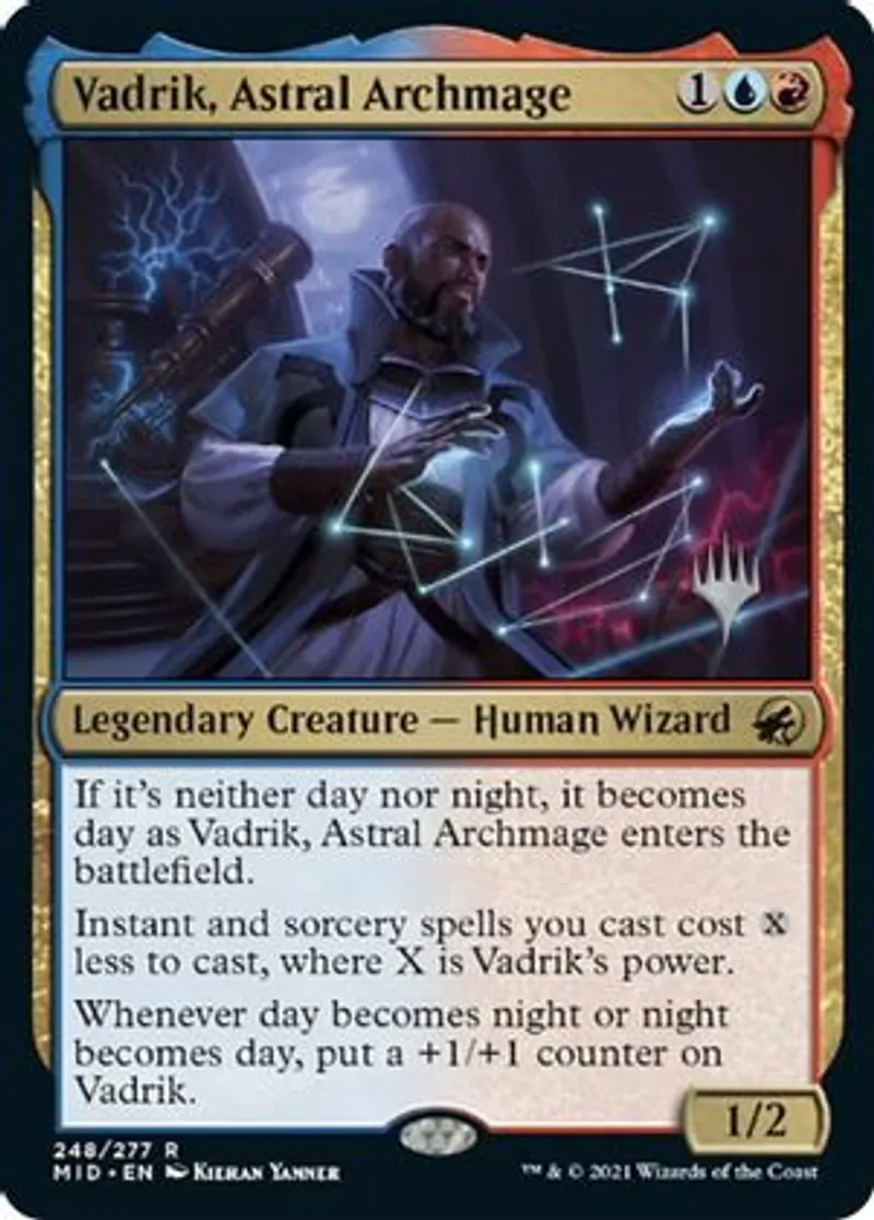 | Oracle Text | If it’s neither day or night, it becomes day as Vadrik, Astral Archmage enters the battlefield.